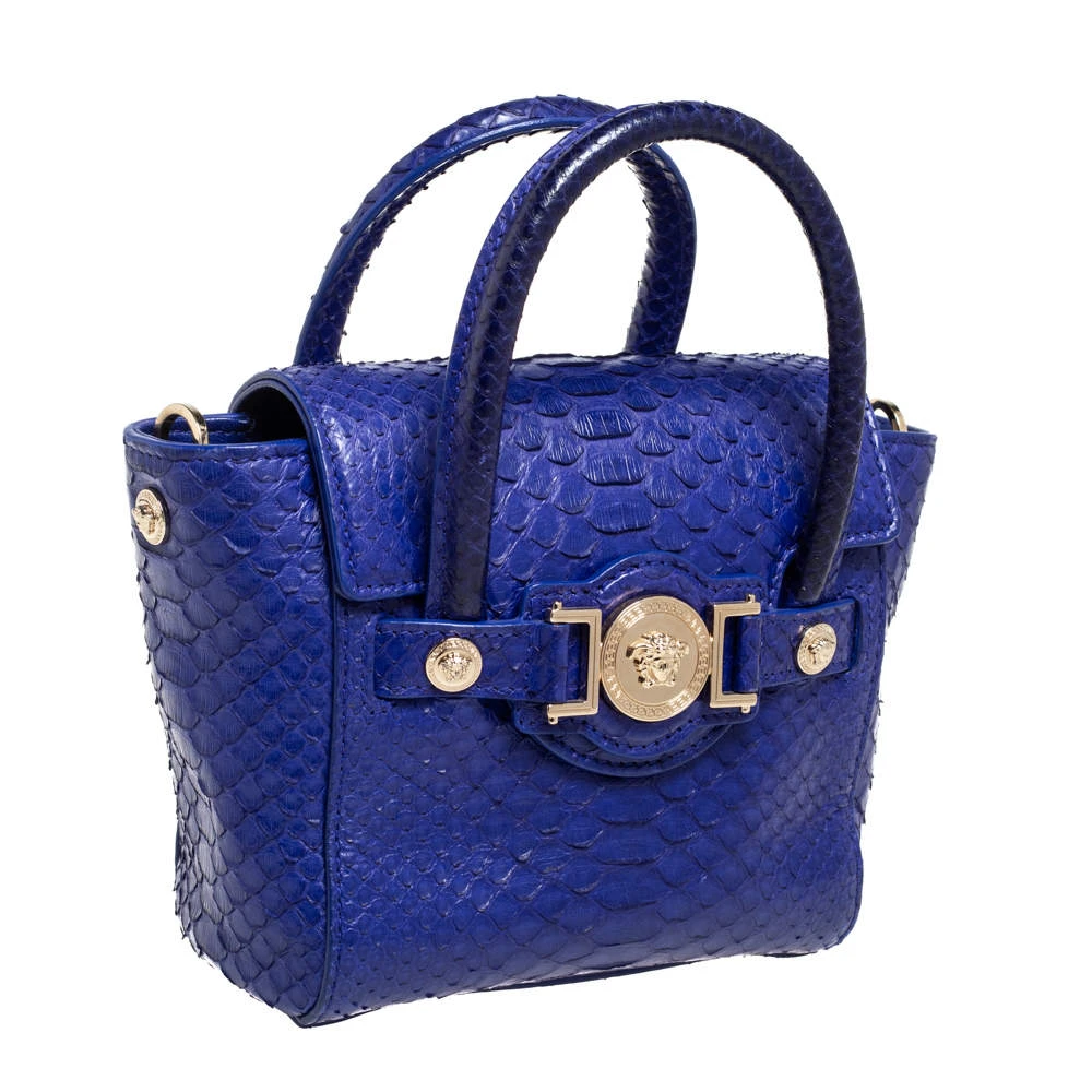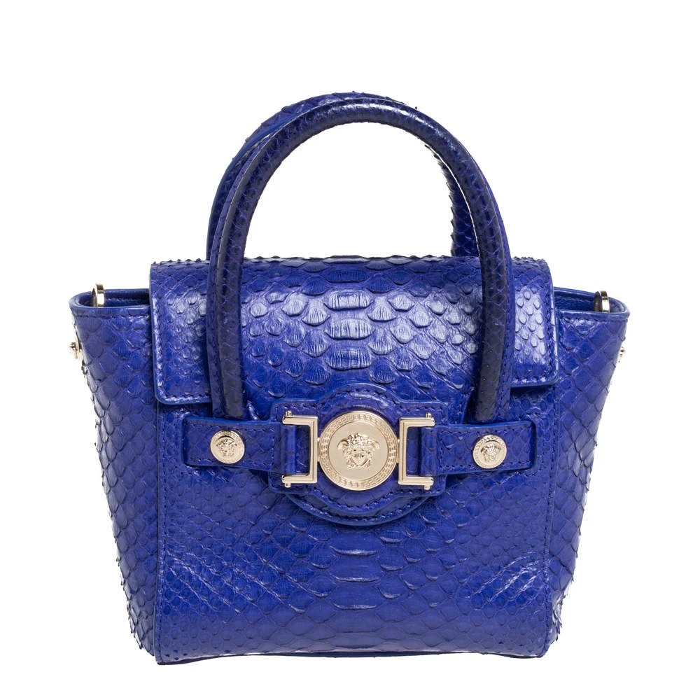 Sophisticated and luxe, this bag from Versace definitely needs to be on your wishlist. The tote bag is crafted from python in a lovely royal blue shade and it features a structured silhouette. It flaunts dual handles, a removable shoulder strap, and the famous Medusa logo on the front. The spacious satin interior houses slip pockets. (Available for UAE Customers Only)