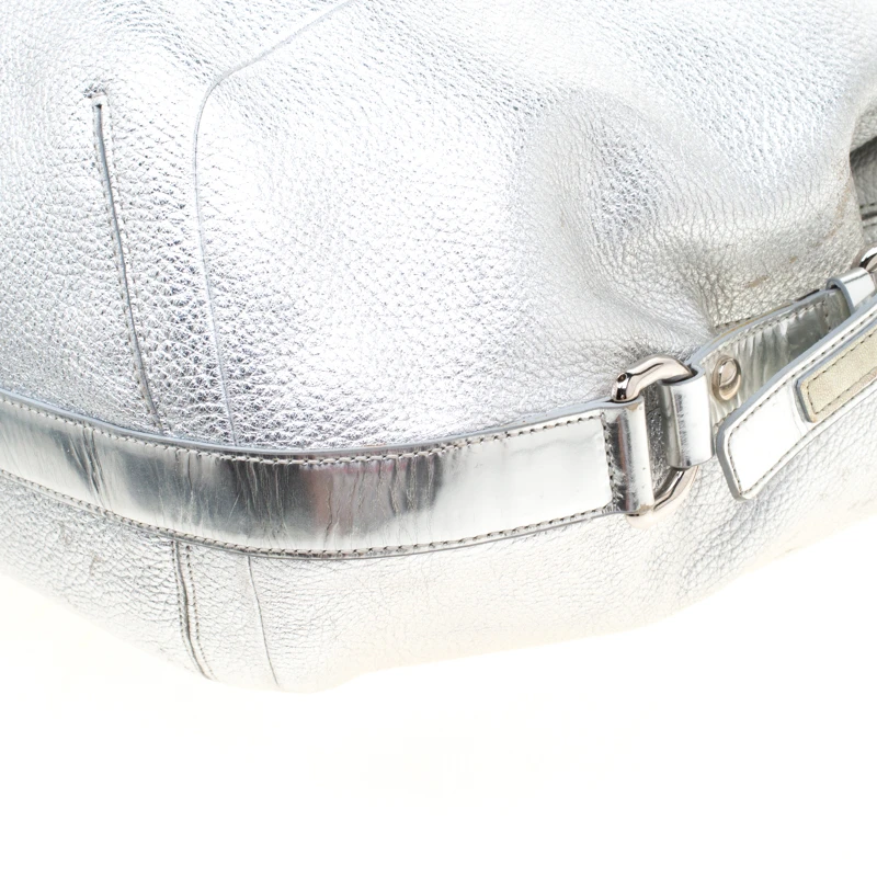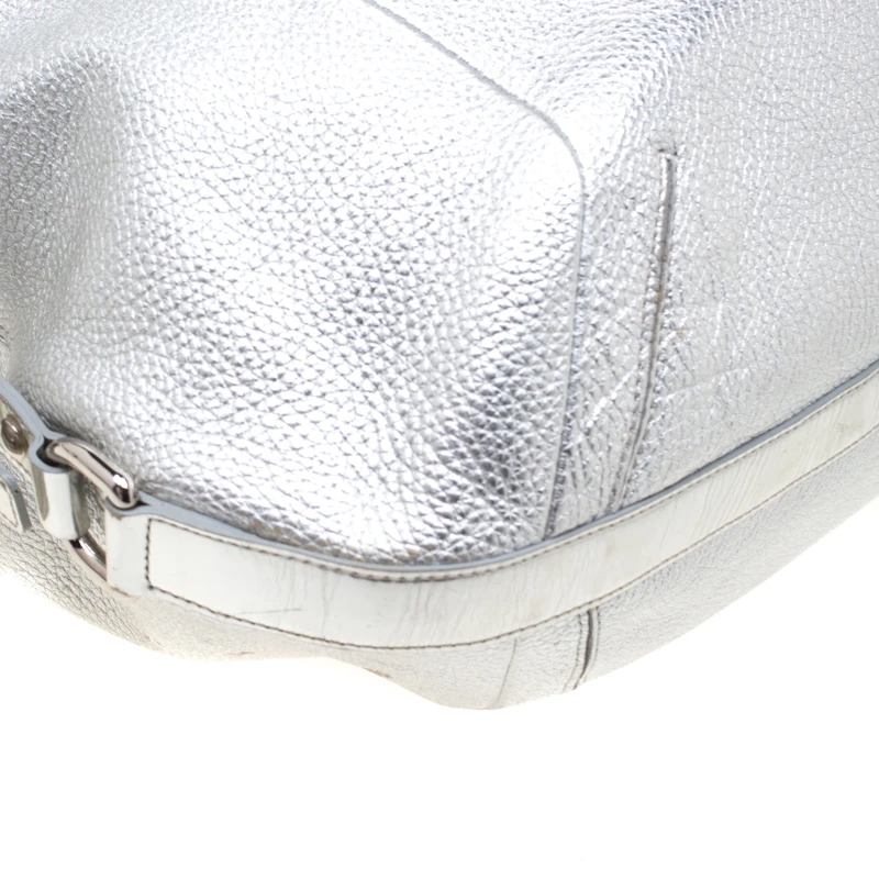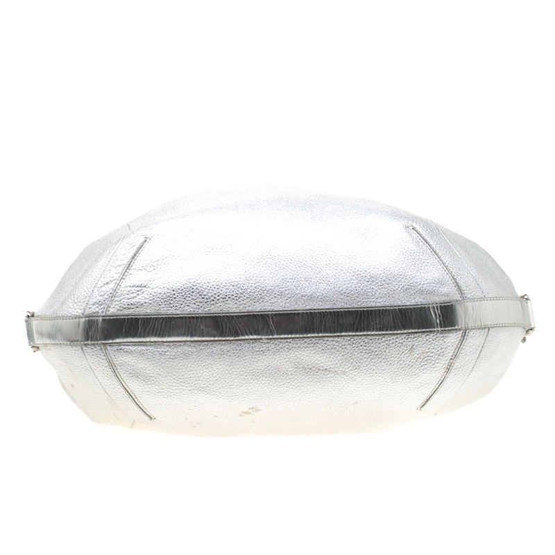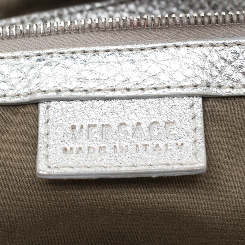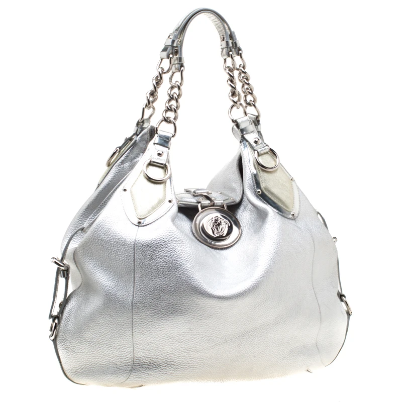 Crafted from silver leather, this hobo from Versace is designed with minimal style details but with high attention to craftsmanship. The hobo features dual chain handles and silver-tone hardware. The spacious interior of the bag is lined with satin and houses a zip pocket.