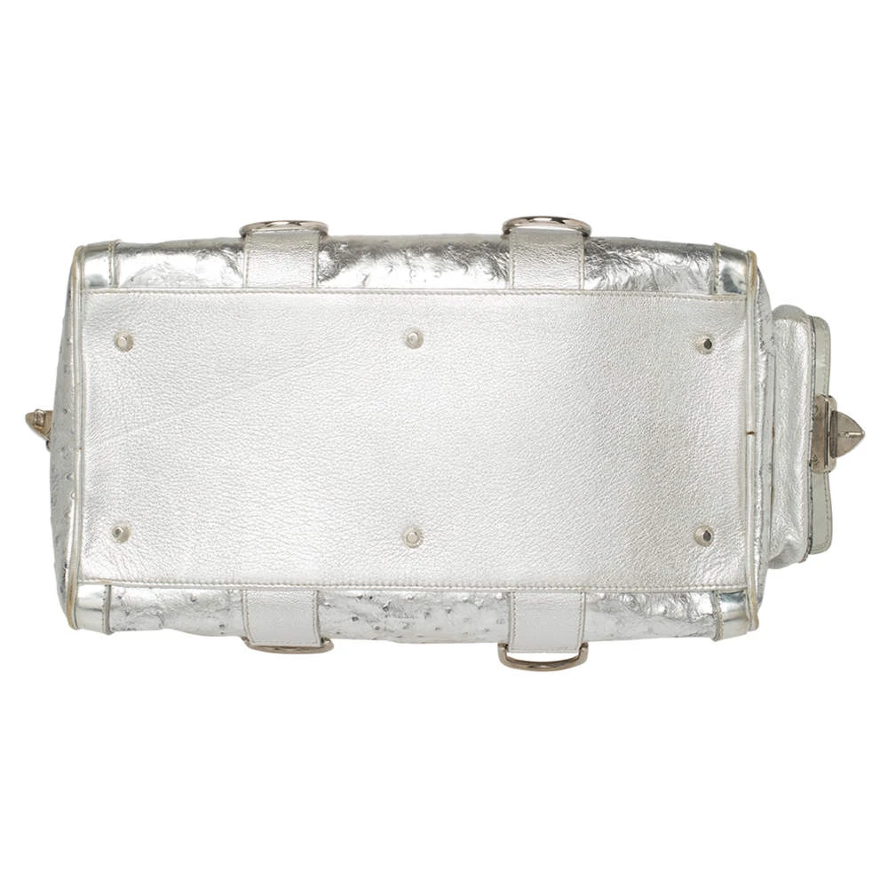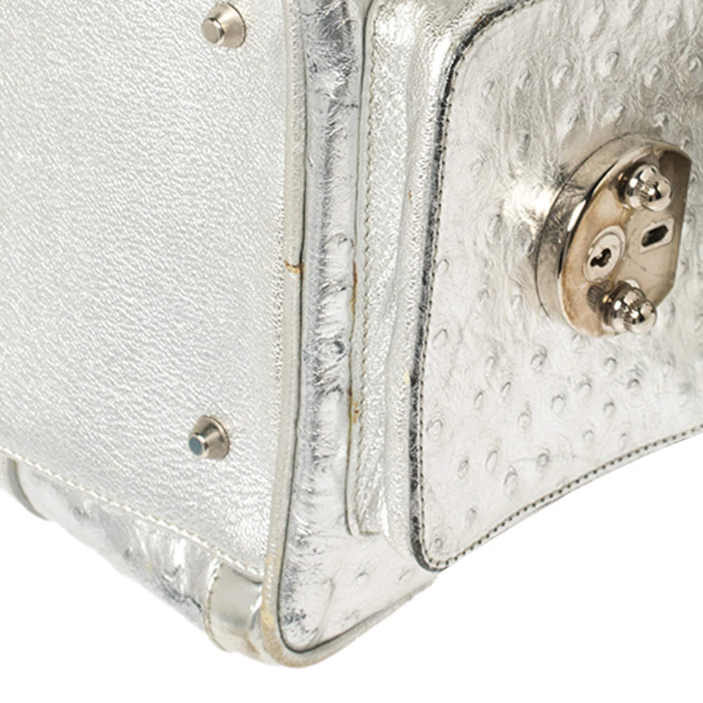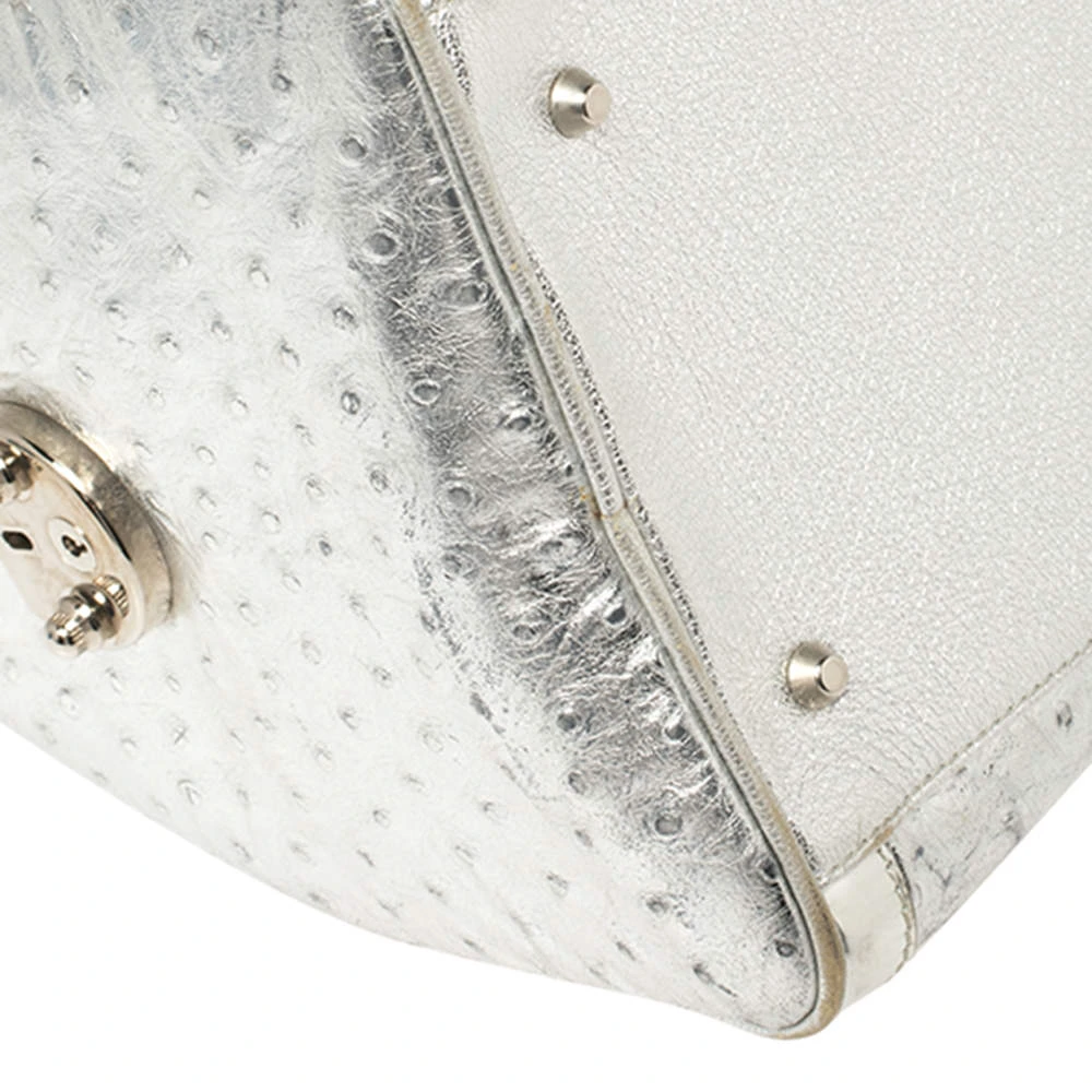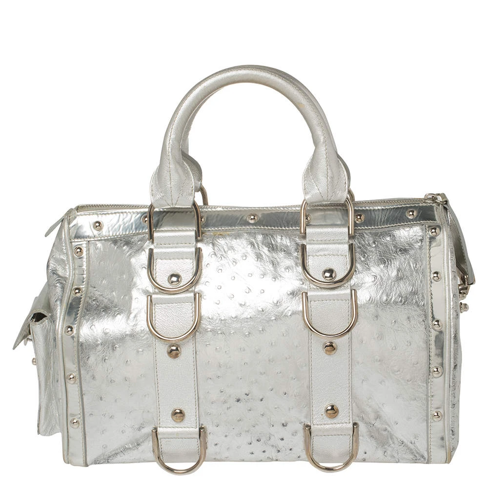 How gorgeous is this satchel from Versace! It carries an outstanding design and a fabulous interplay of ostrich-embossed leather and silver-tone hardware. It has a top leading to a satin interior while being held by two top handles. The shape and the Medusa logo on the front just uplift its beauty and makes it a buy you will not regret.