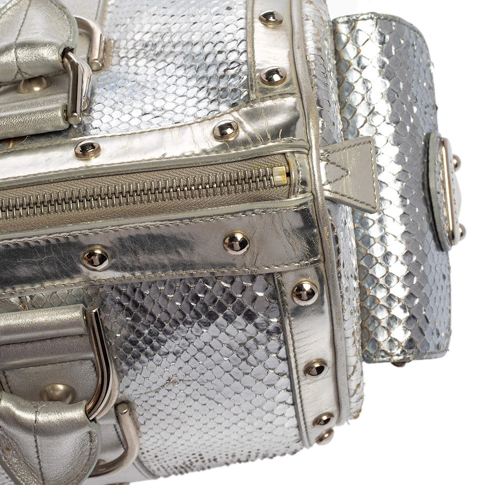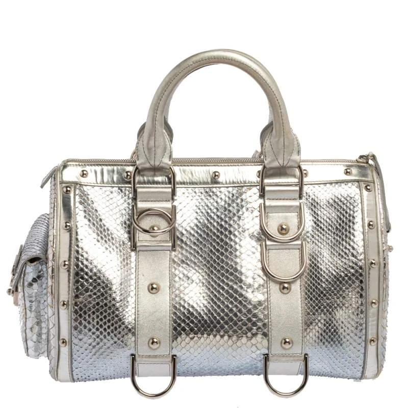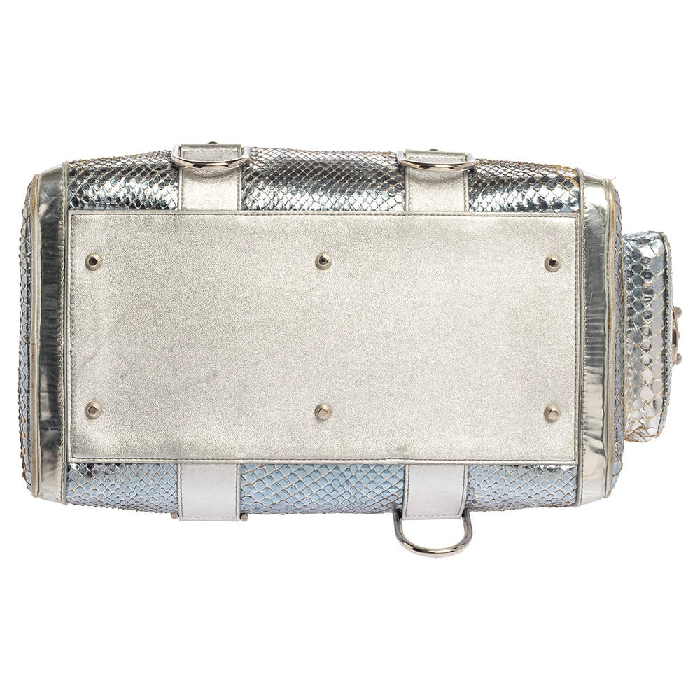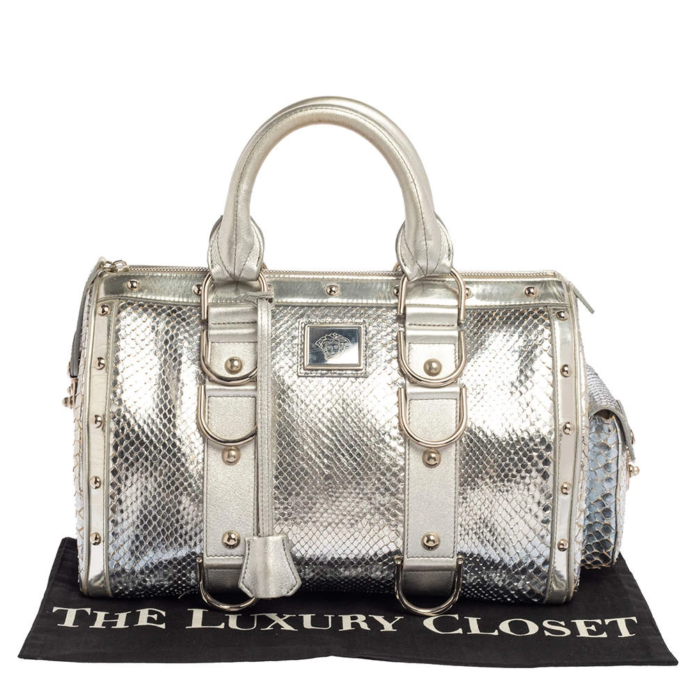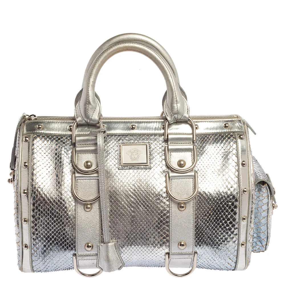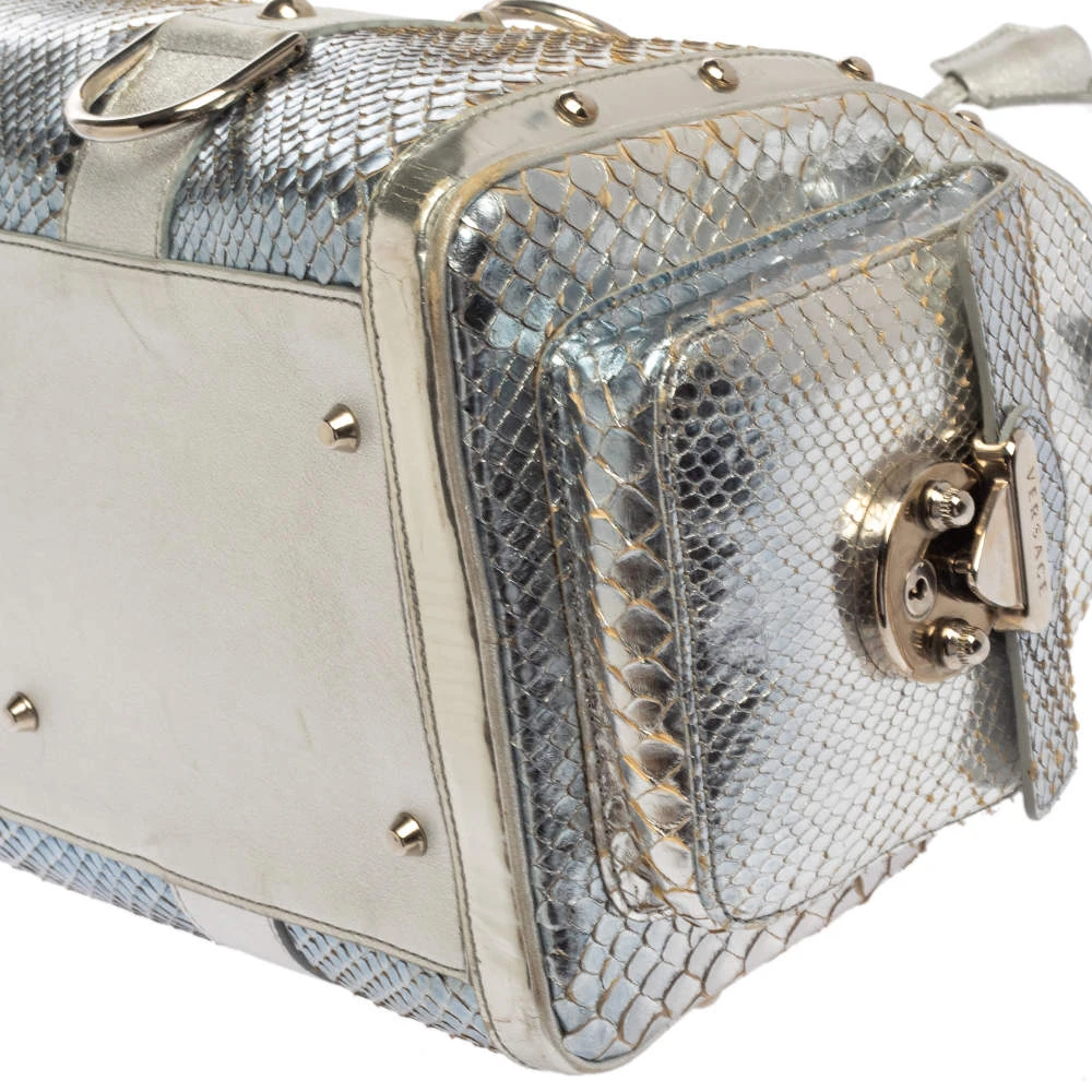 Versace Silver Snakeskin Snap Out Of It Satchel For Women
