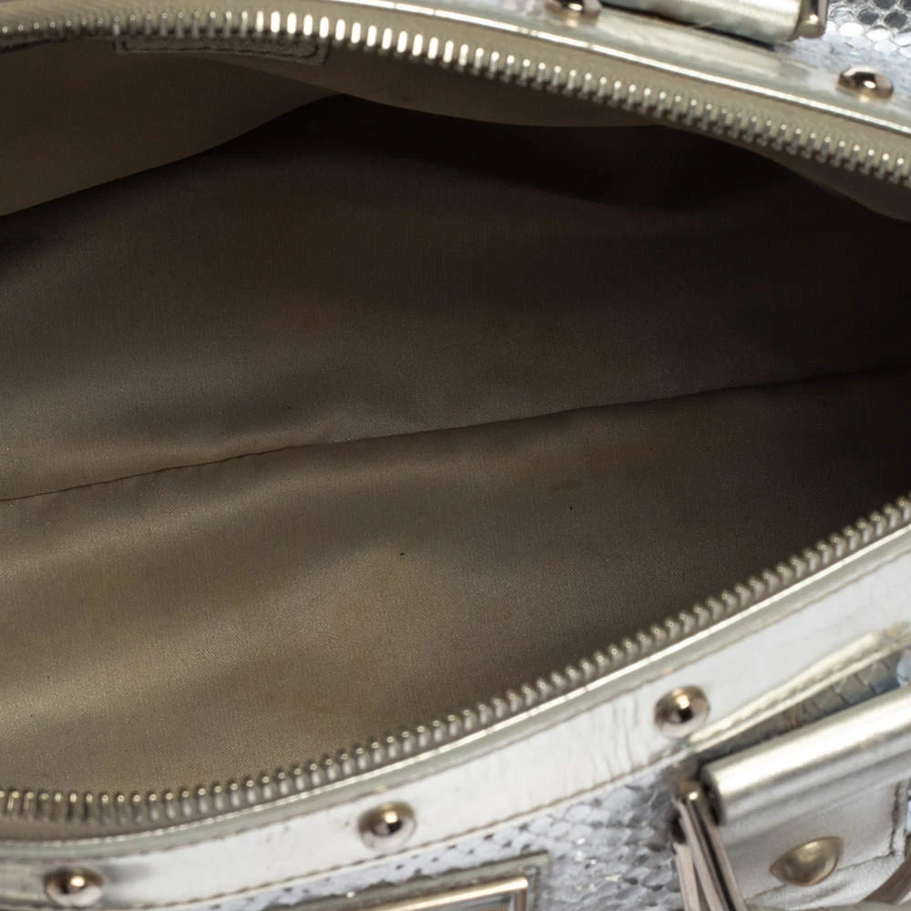 Versace Silver Snakeskin Snap Out Of It Satchel For Women - Image 15