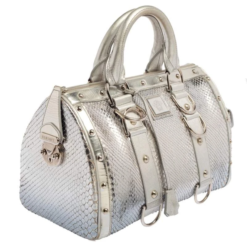 Versace Silver Snakeskin Snap Out Of It Satchel For Women - Image 4