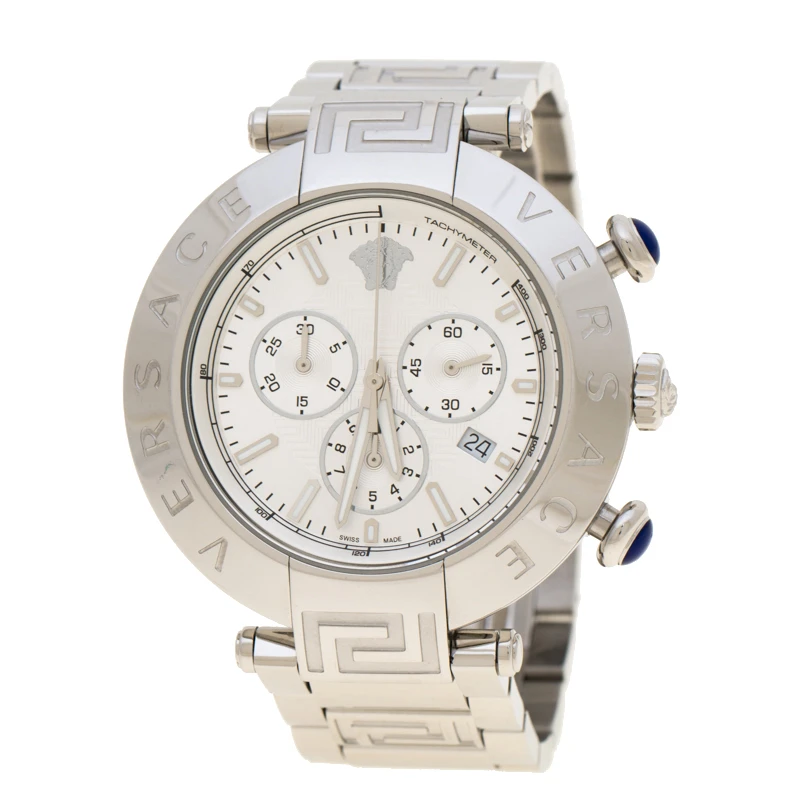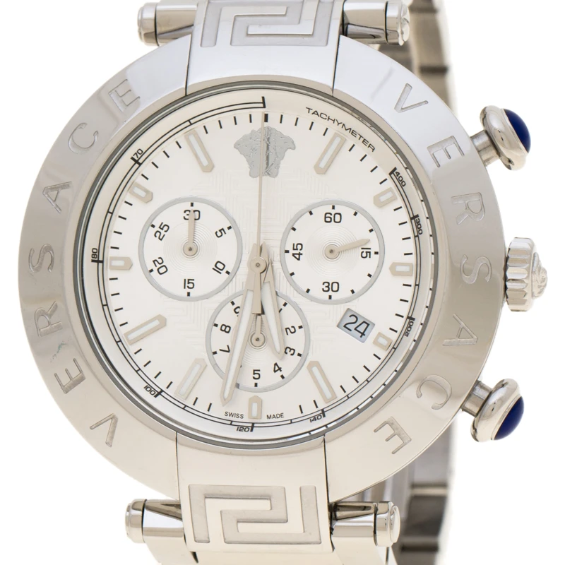 A sleek, sophisticated watch such as this Versace Reve watch deserves a special place in your watch collection. Timeless and versatile, this timepiece can be worn for any occasion. It features a Versace engraved bezel and fitted within is a round dial. The dial features three hands, index hour markers, the Medusa logo at twelve o’ clock position, a date window at four o’ clock position and three subdials. This stunning piece is finished with a bracelet strap and a clasp closure. Make it a part of your everyday looks.