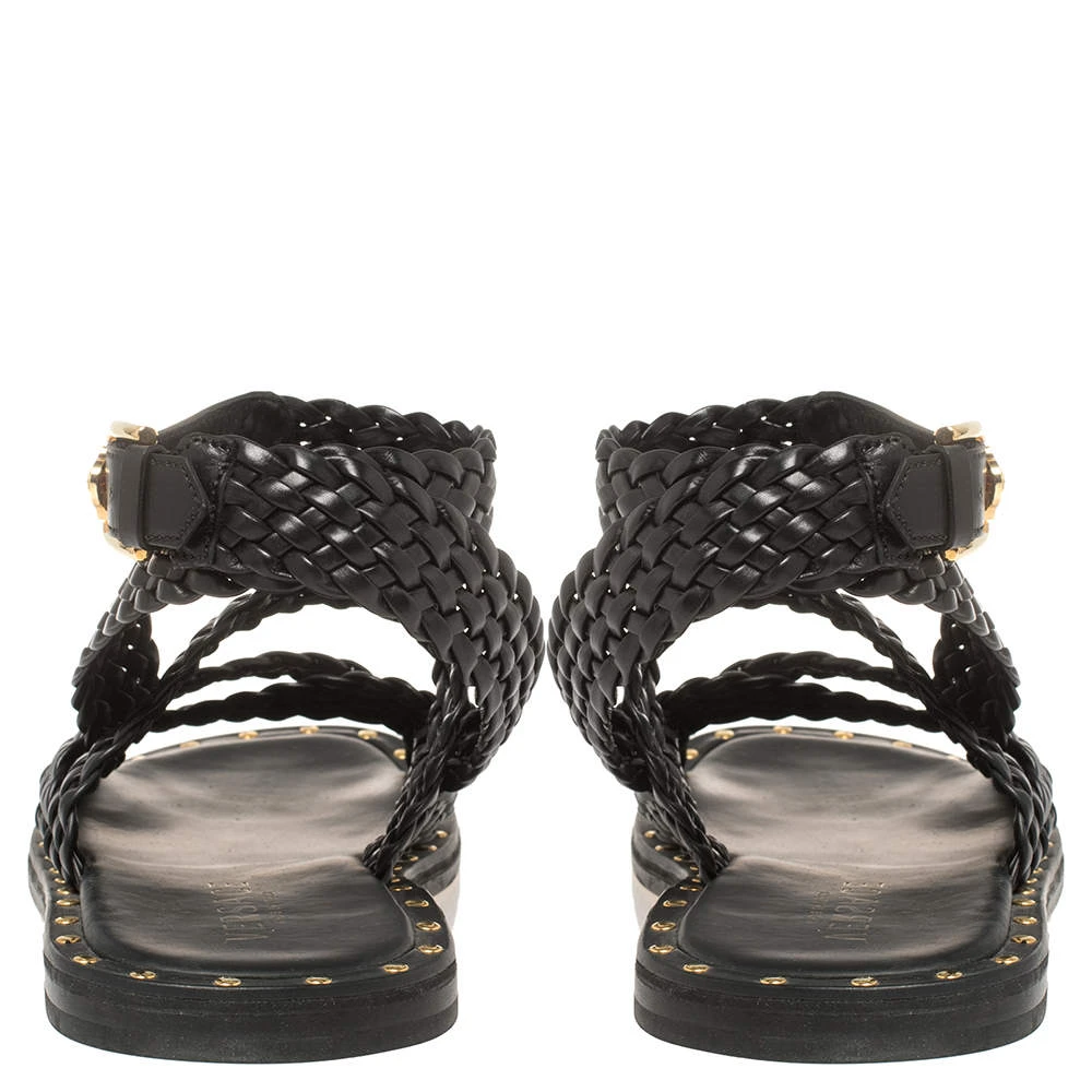 Versace’s sandals are minimal and comfortable. They are crafted from braided leather in a black shade and feature a strappy style secured by gold-tone buckles. Wear them with casual outfits for a stylish look.