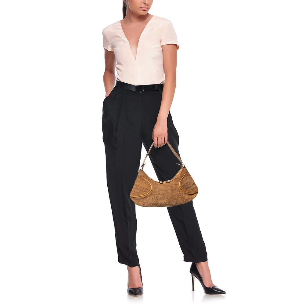 Versace brings us this well-shaped baguette bag that has been crafted from embossed suede and added with leather trimming and metal charms. The fabric-lined interior will easily hold your belongings and the handle can be held in your hand or on your shoulder.