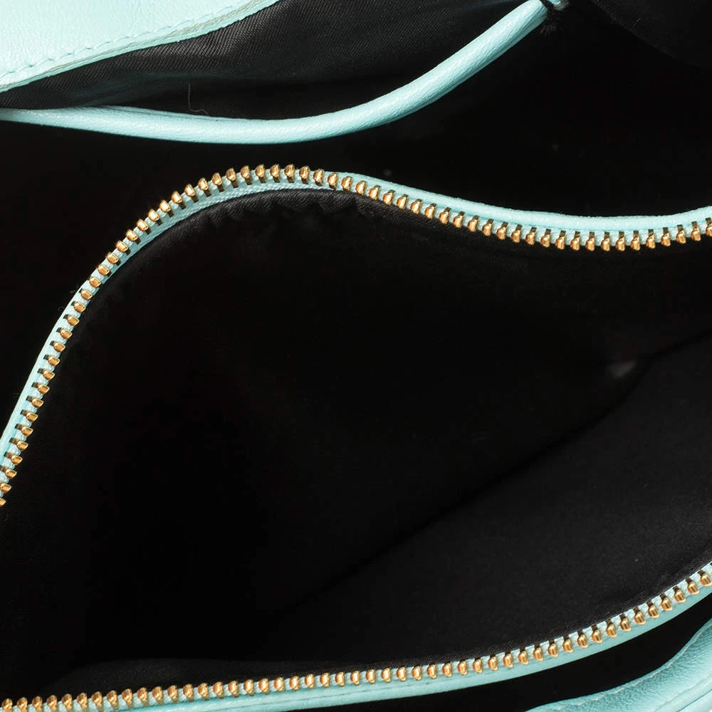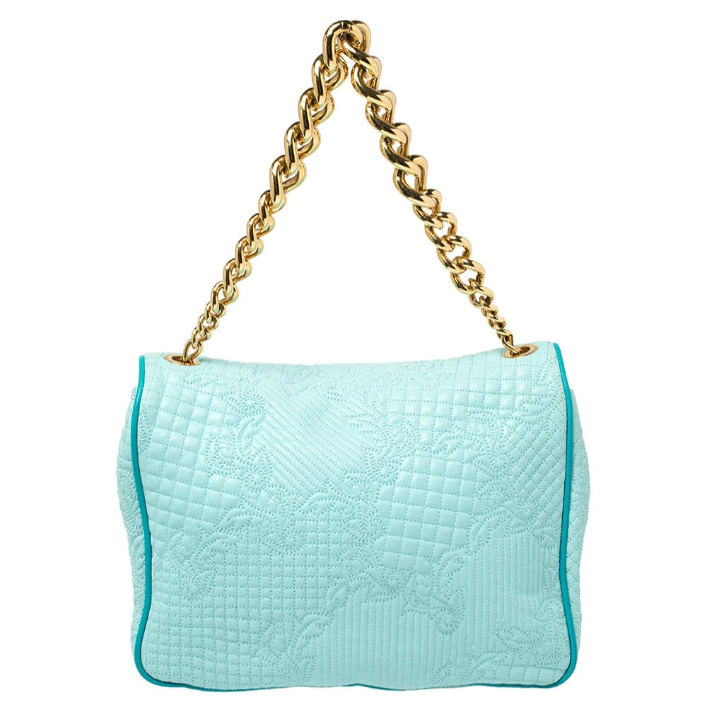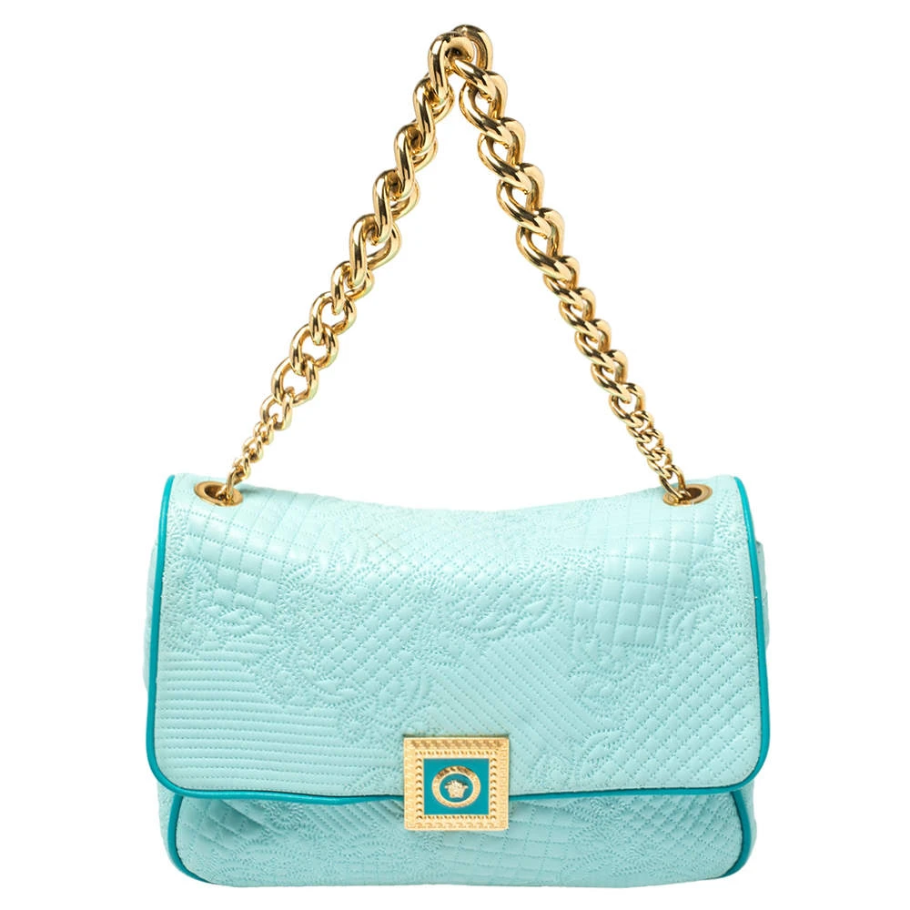 How gorgeous is this bag from Versace! Crafted from turquoise leather and gold-tone hardware, it carries an outstanding design. It has a fabric interior secured by a front flap and a shoulder strap. The tasselled-Medusa detail uplifts its beauty and makes it a buy you will not regret.