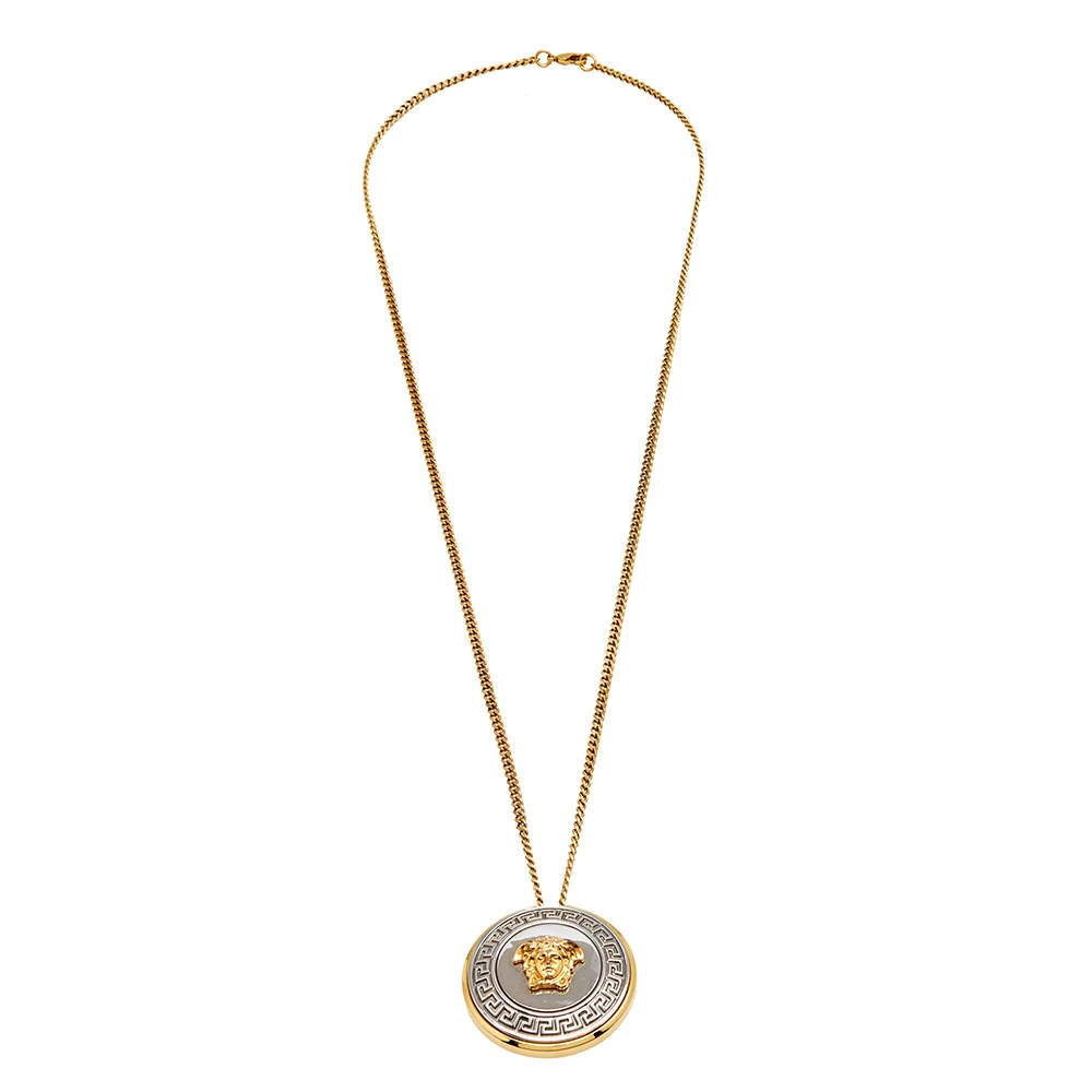 Accessorize your outfit with this beautiful necklace from Versace. The lovely necklace is crafted from two-tone metal and features the brand’s signature Medusa pendant. It comes with a sleek chain and a lobster clasp.
