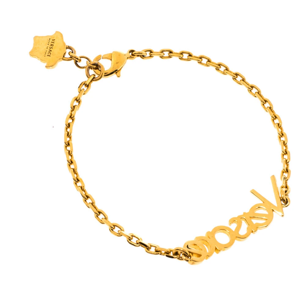 You’ll catch yourself admiring this Versace bracelet once it is on your wrist. It has been crafted from gold-tone metal and designed with the ‘Versace’ logo at the center. The piece is complete with a lobster clasp fastening and a Medusa charm.