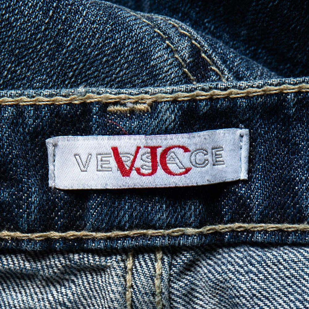 These jeans from Versace VJC are all you need to look super-trendy. These jeans are tailored using navy-blue denim-washed fabric with five external pockets and a zip closure. Pair these jeans with your casual tops as you head out.