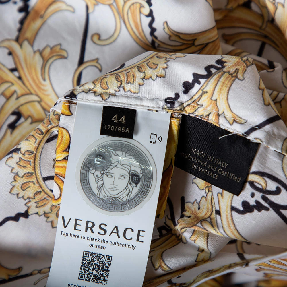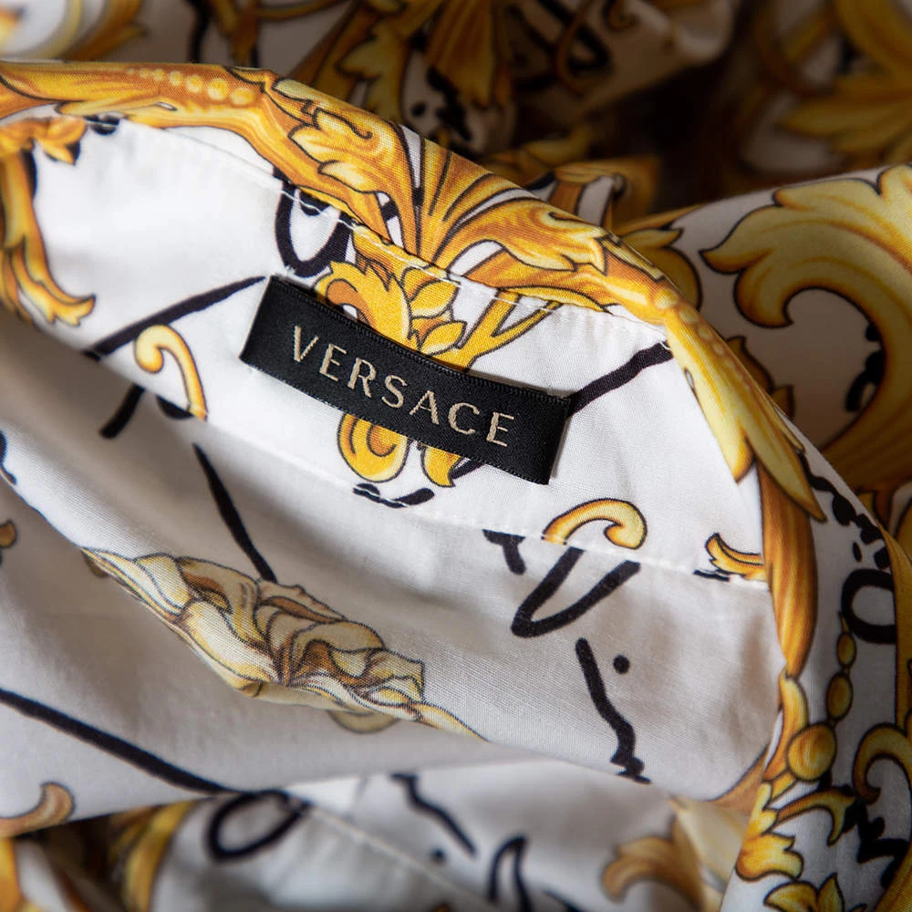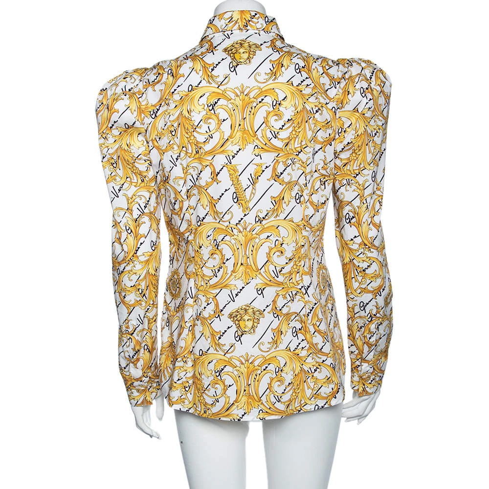 Signature prints for an unmistakable Versace charm and dramatic Victorian sleeves ensure that the wearer of this shirt effortlessly projects a fashionable look. It is tailored using cotton and added with a simple collar and front button closure.
