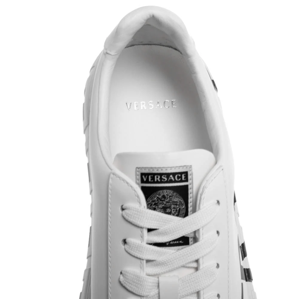 Coming in a classic low-top silhouette, these Versace sneakers are a seamless combination of luxury, comfort, and style. They are made from leather in a white shade. These sneakers are designed with logo details, laced-up vamps, and comfortable insoles.
