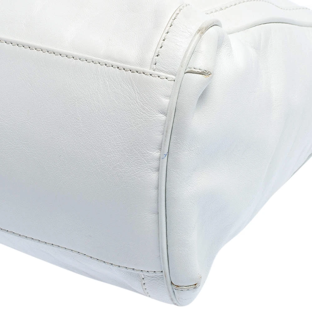 Look classy and sophisticated in this Versace tote. Get yourself this stylish leather bag for a modern look. It is lined with satin to store your essentials which adds to its functionality. The bag flaunts dual handles and the brand logo embossed on the front.