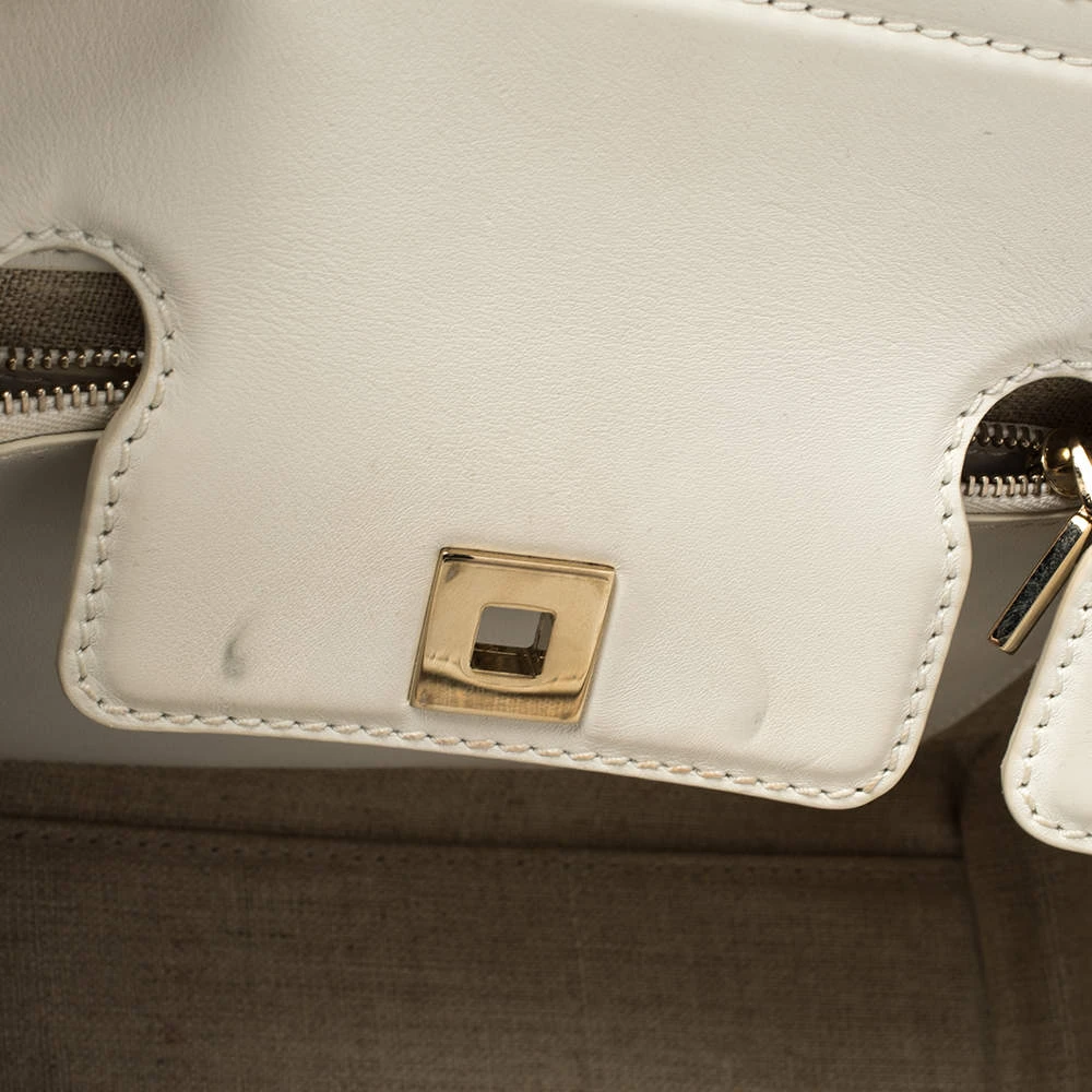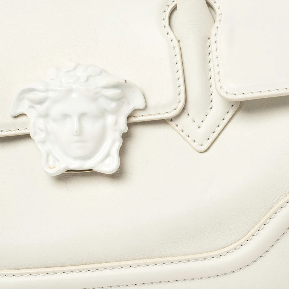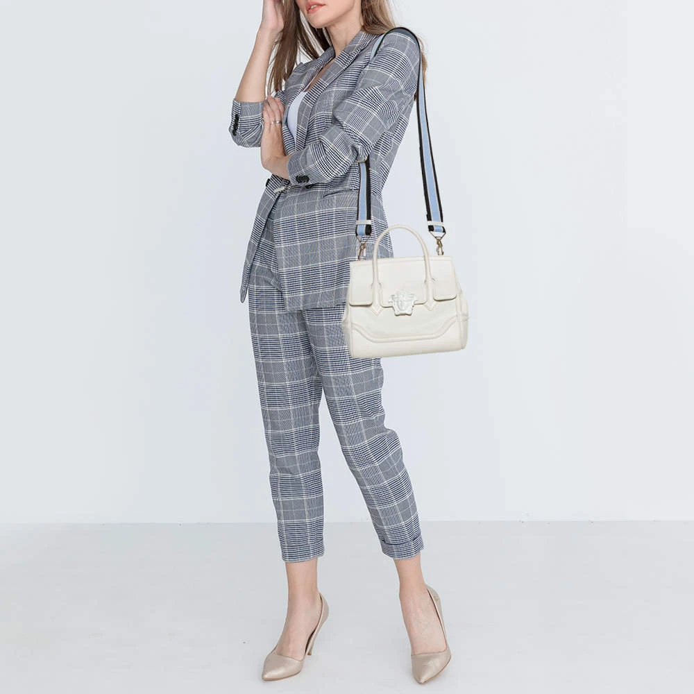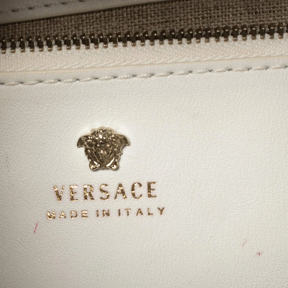 This Palazzo Empire tote from Versace is just amazing! Exhibiting a chic persona, it comes crafted from white leather and features a front flap that carries the iconic Medusa motif. It opens to a canvas and leather interior that can graciously accommodate your basic essentials. Equipped with dual top handles and a detachable shoulder strap, it is sure to be an investment-worthy buy!