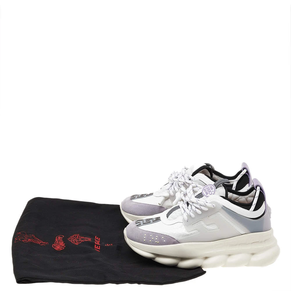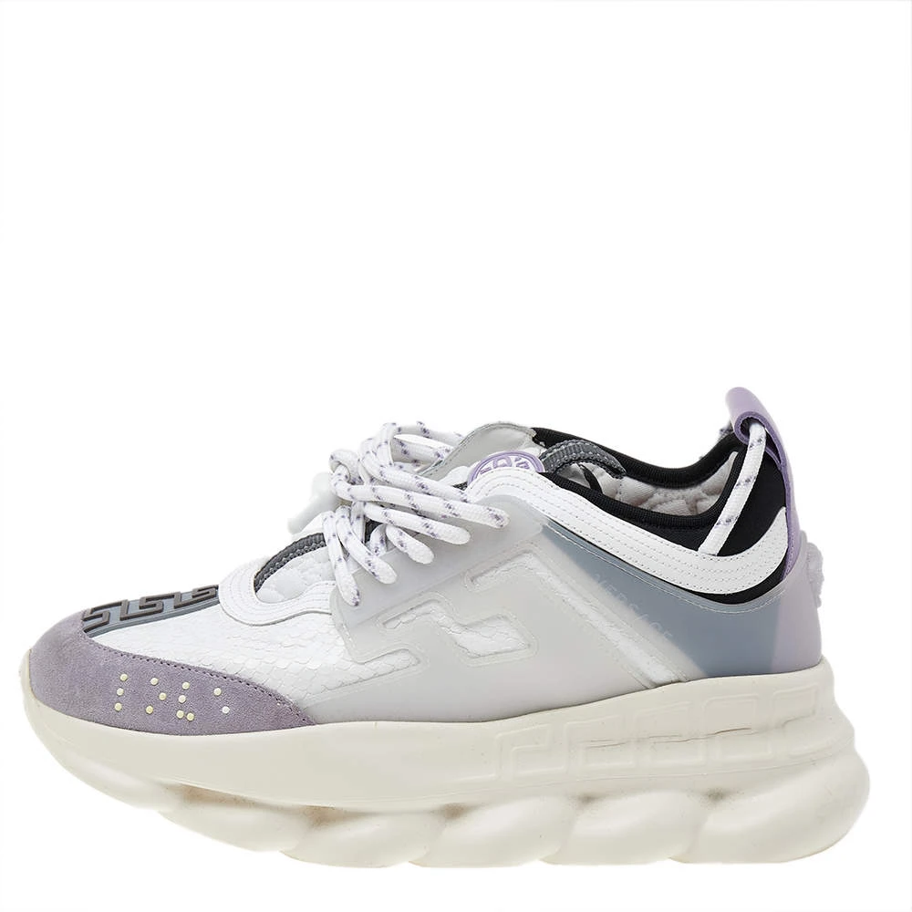 Versace’s Chain Reaction sneakers are for fashionable people like you and a stylish take on the chunky sneaker trend. These ones are crafted from high-grade materials in white. They feature laces, signature detailing, high platforms, and outsoles featuring a chain-like design.