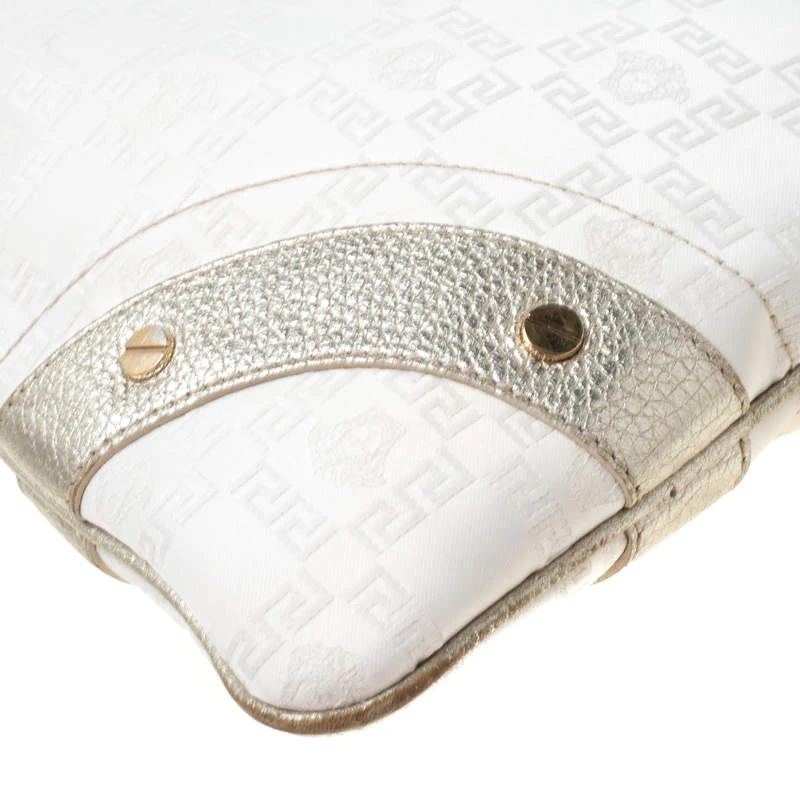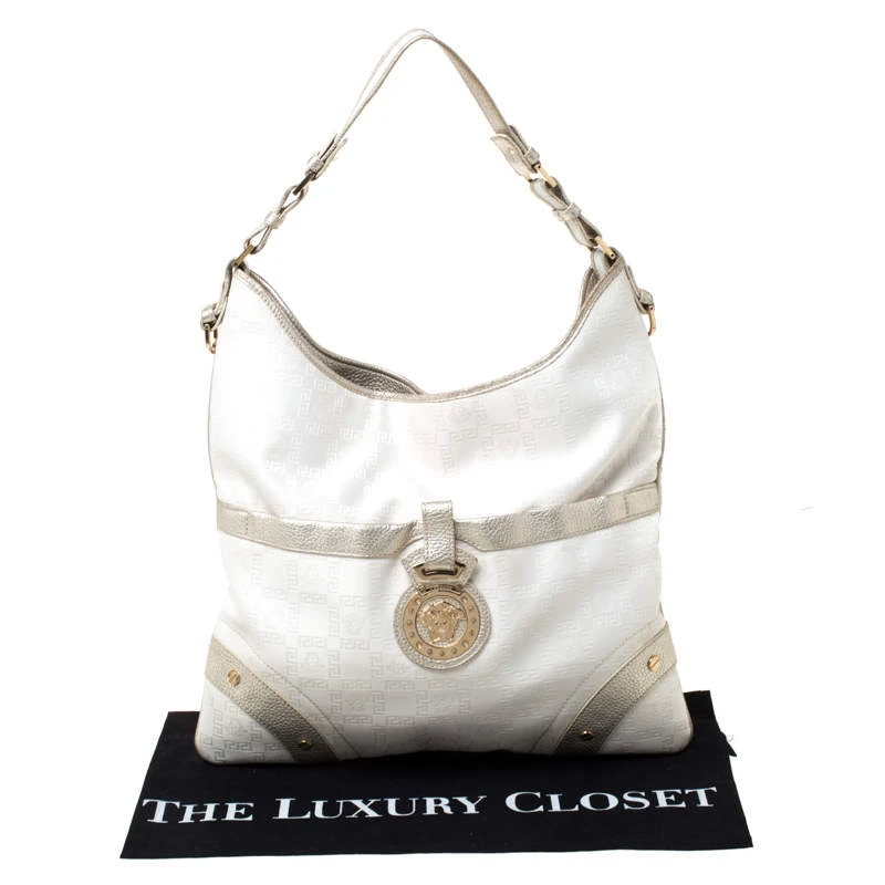 This beautifully stitched signature fabric and leather hobo is by Versace. With a fabulous fabric-lined interior, it will house more than your essentials. Boasting of a seamless finish, this hobo offers style and utmost practicality.