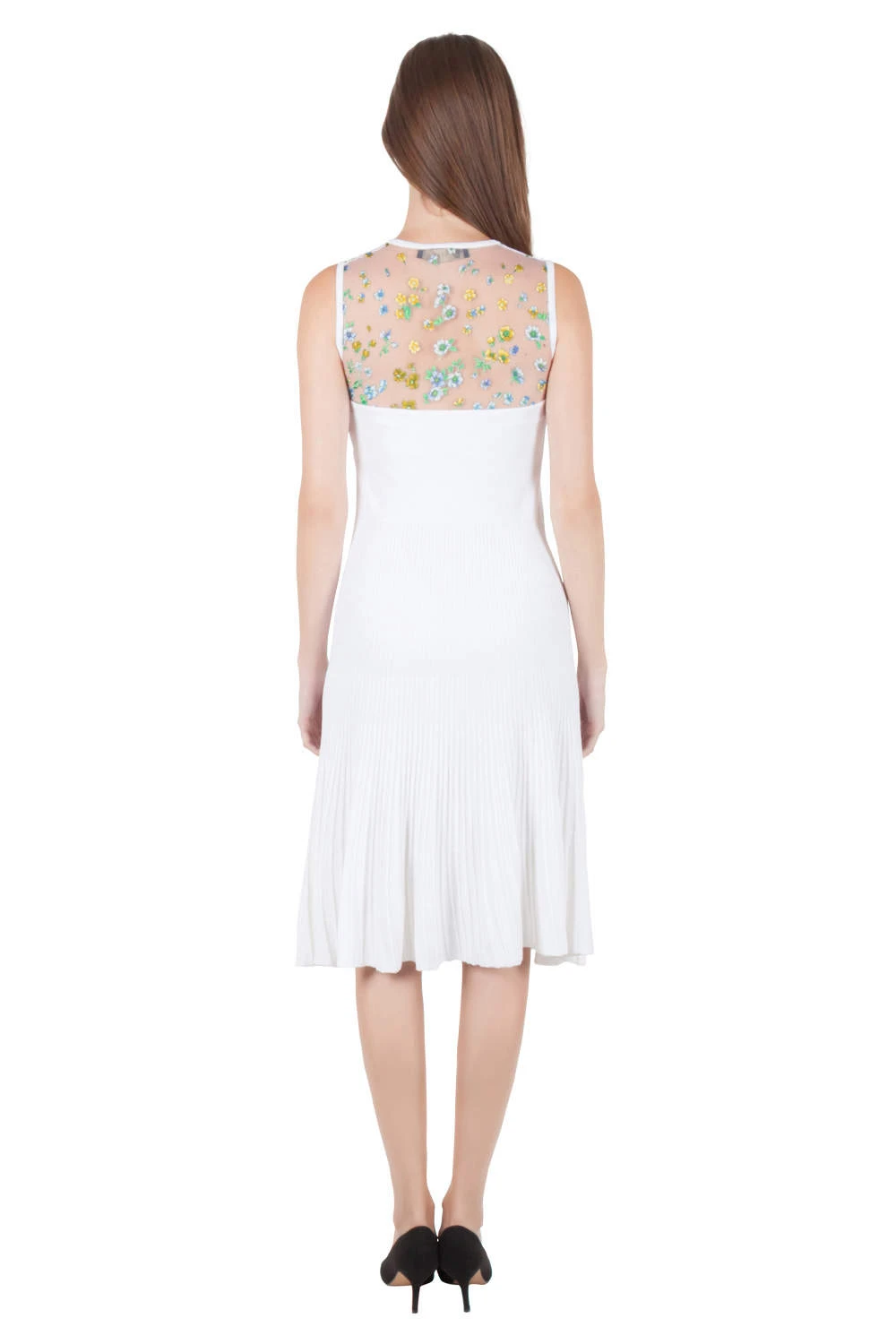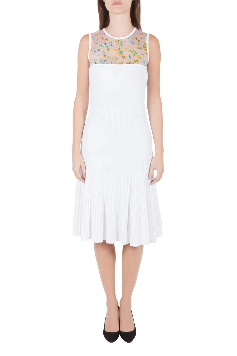 Looking chic is so easy with this tasteful design by Versace. The sleeveless dress comes with a floral printed sheer yoke that establishes its remarkable appeal. Tailored from a durable fabric blend, this white piece will be your favourite purchase.