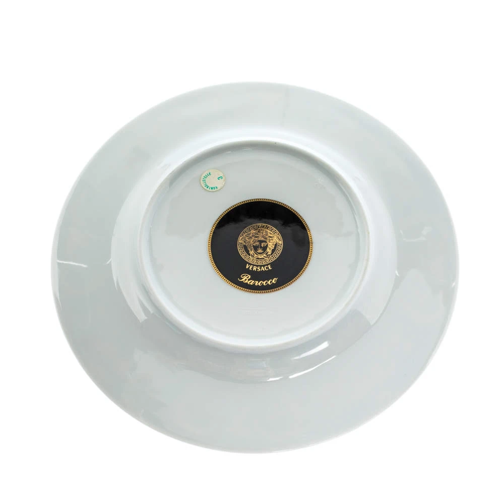 Finely crafted by skilled hands using porcelain, this plate from Versace X Rosenthal is to add an exquisite touch to your tabletop. The design on it is a luxurious spread of gold patterns on black and white.
