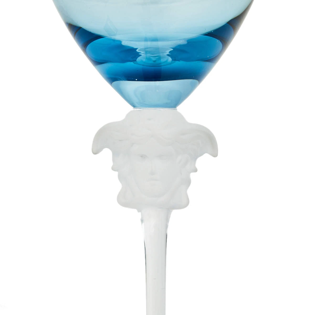 This Versace x Rosenthal wine glass has an alluring look. It has a blue-tone bow and a slim, long stem that has the Medusa motif for an unmissable brand mark. It is also a fine gifting option.