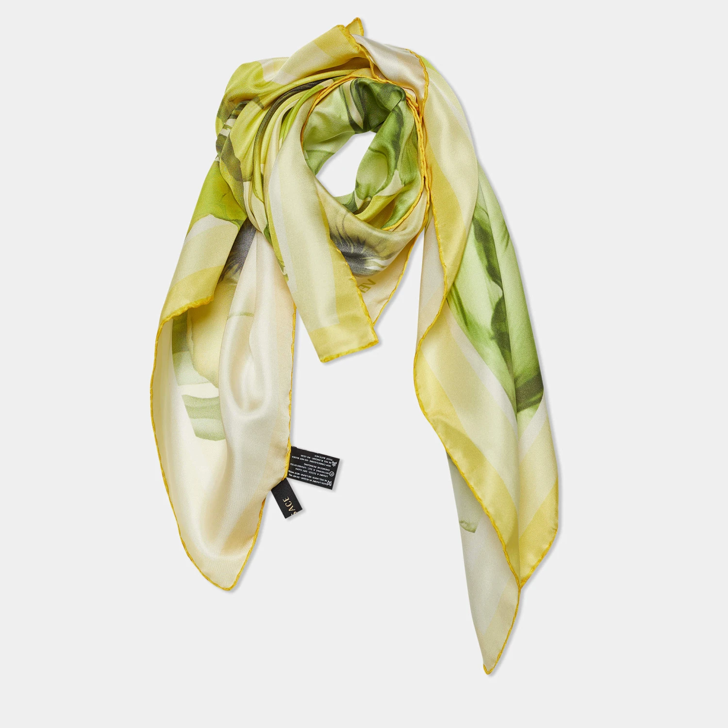 From the house of Versace, this beautiful scarf will be a perfect addition to your precious collection of accessories. Complete your daily ensemble with this splendid scarf in a yellow floral print. Ace the styling game and set goals for everyone else by donning this silk scarf.