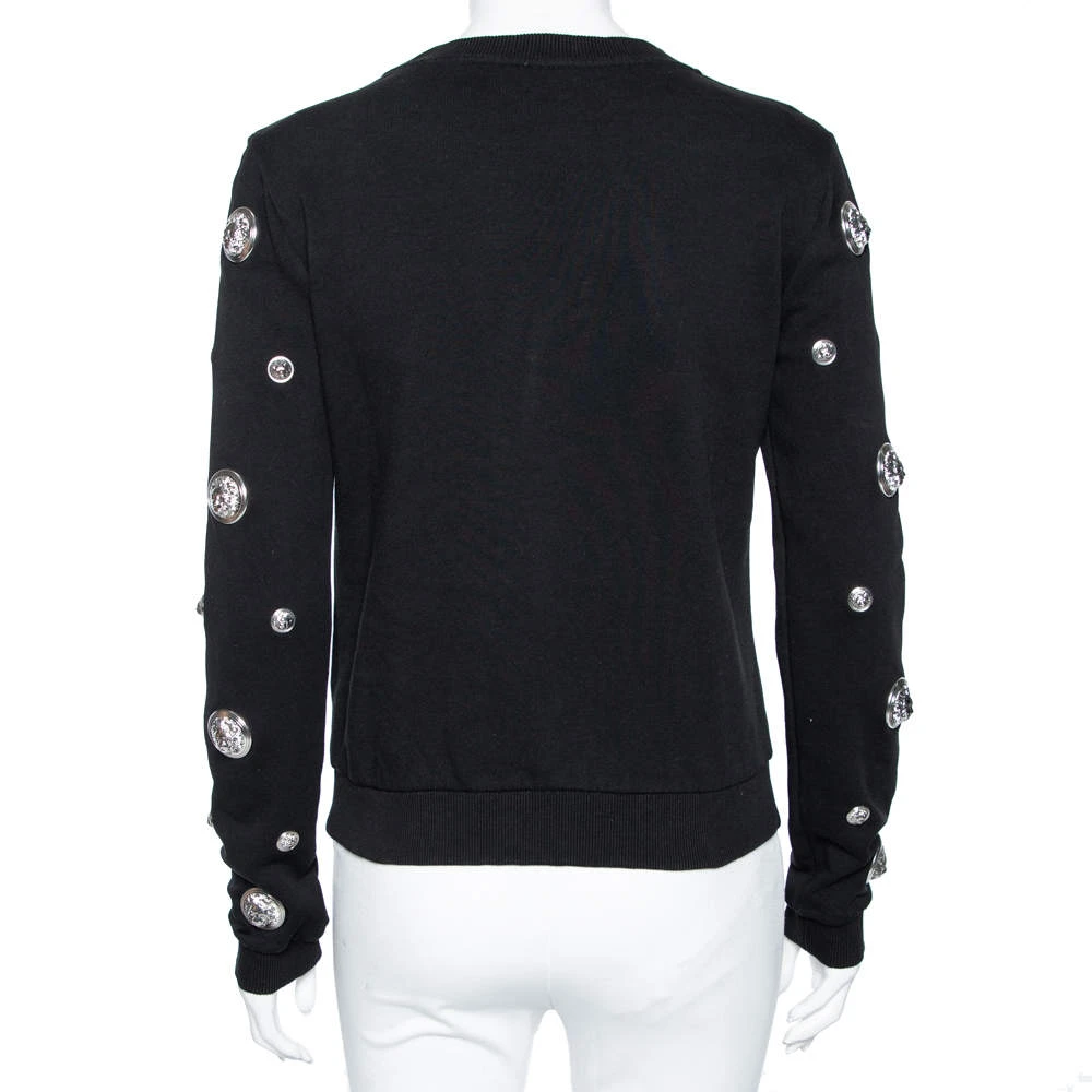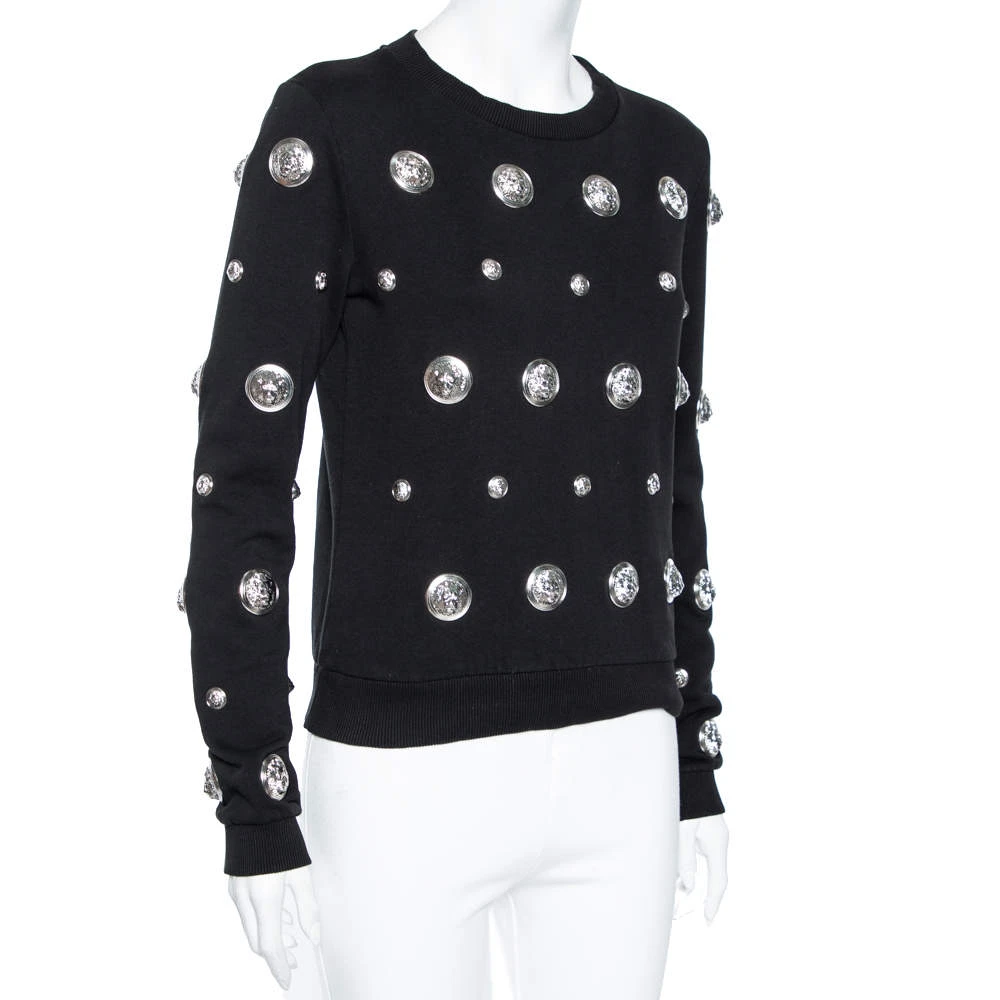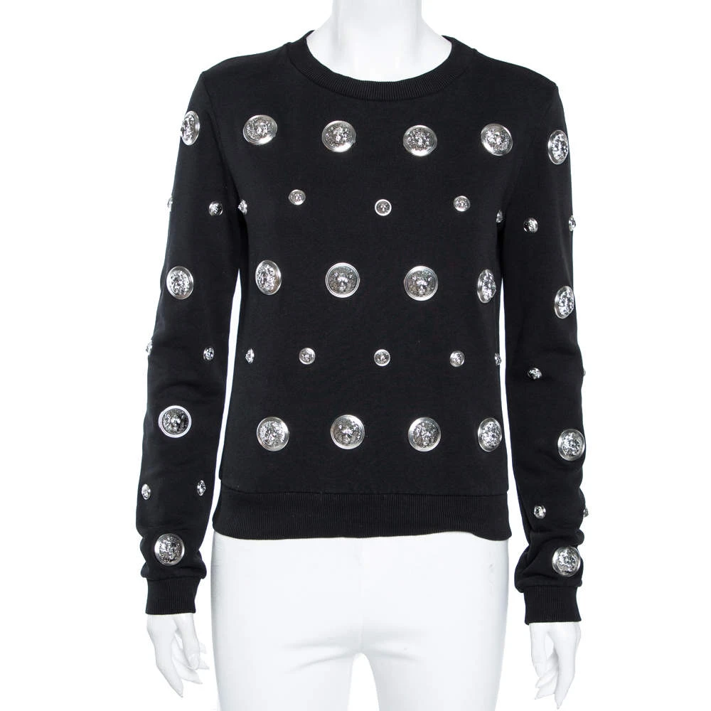 Basic sweatshirts are a must-have for any wardrobe! Versus Versace brings you the best. Made from a blend of quality materials in a black shade, it features a round neckline and embellishments. The creation can be styled with denim pants and sneakers for a casual look.