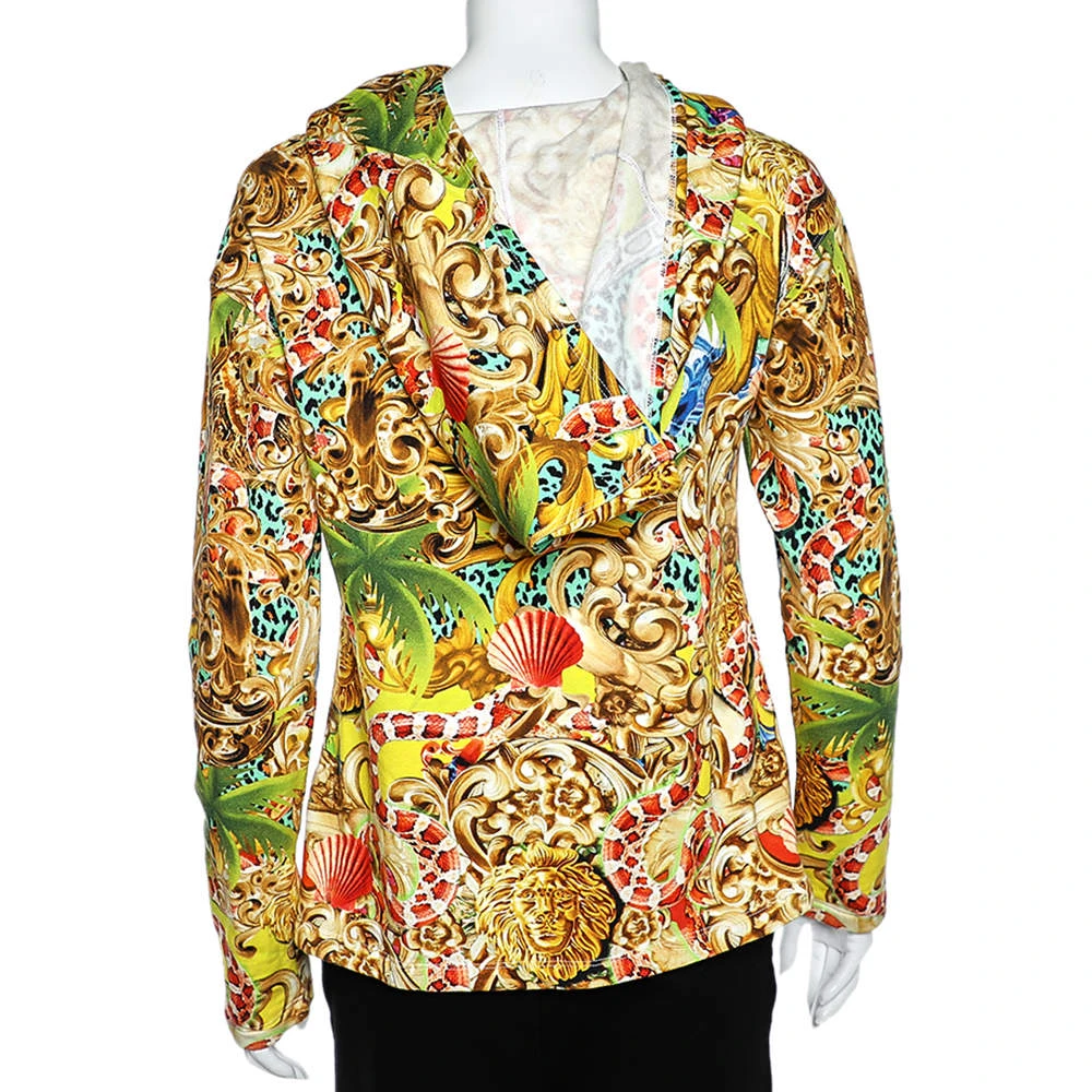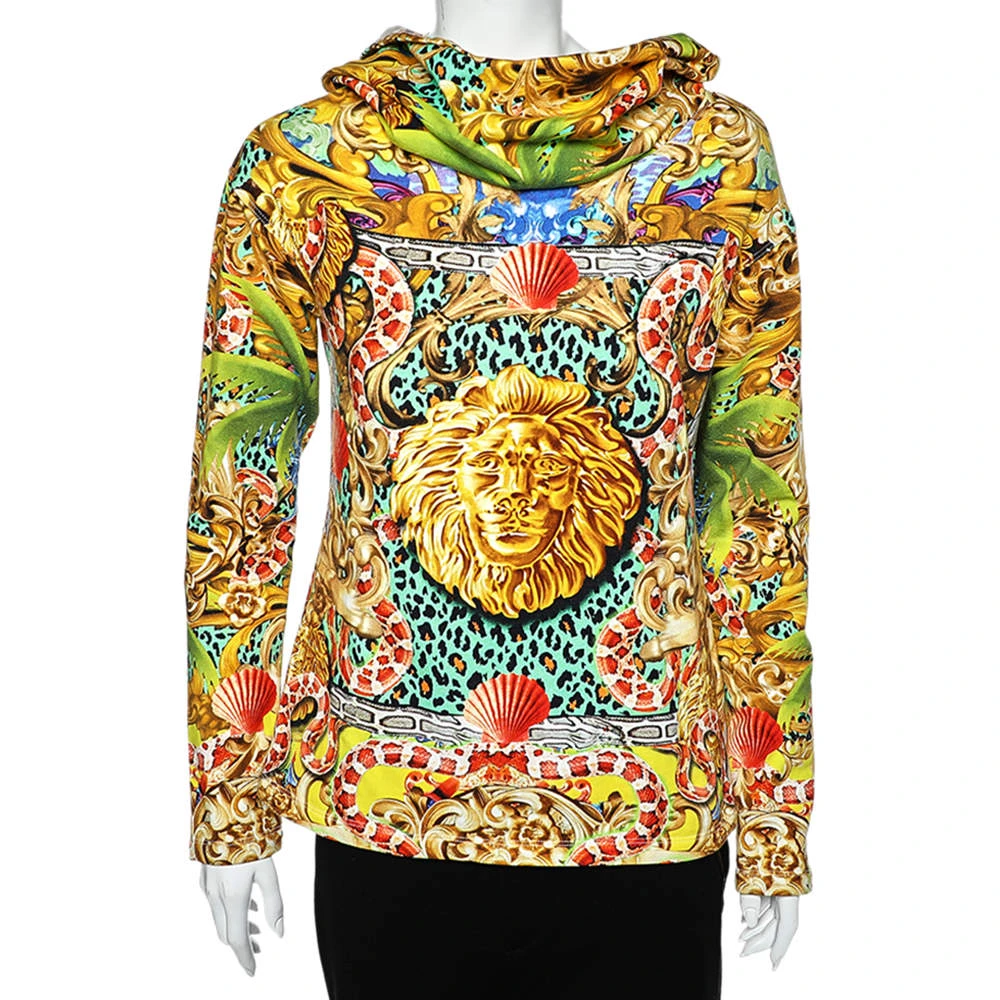 Whether you want to go out on casual outings with friends or just want to lounge around, Versus Versace sweatshirt is a versatile piece and can be styled in many ways. It has been made in multiple shades. This piece is finished off with long sleeves, a hoodie. Style it with basic denim jeans and sneakers for an impeccable casual look.