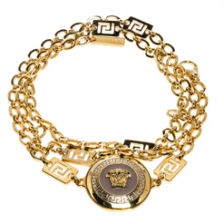 Versace Yellow Gold Tone Crystal Medusa Charm Necklace For Women