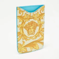 Versace Yellow/Blue Medusa Print Leather Phone Cover For Women