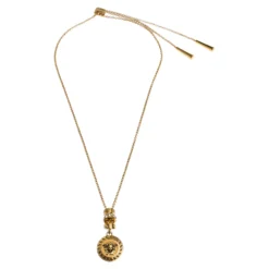 Versace Gold Tone Crystal Tiered Medusa Pendant Adjustable Necklace For Women