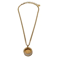 Versace Gold Tone Crystal Triple Halo Medusa Pendant Necklace For Women