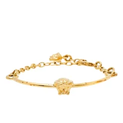 Versace Gold Tone Medusa Round Charm Double Chain Bracelet For Women
