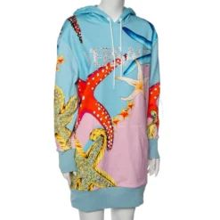 Versace Multicolor Embellished Logo Star Fish Printed Cotton Hooded Sweater Dress S For Women