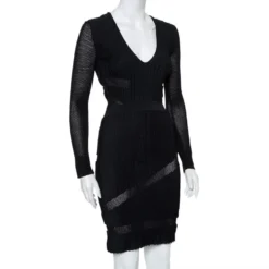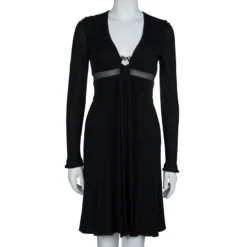Versace Black Pointelle Knit Button Front Long Sleeve Cardigan XL For Women