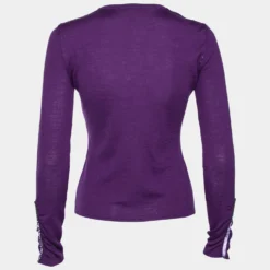 Versace Purple Knit Ruched Crystal Embellished Sweater M For Women