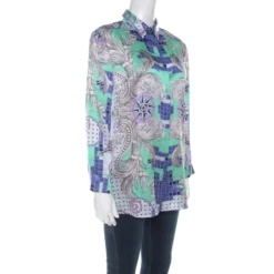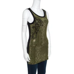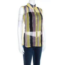 Versace Collection Multicolor Striped Sheer Silk Pearl Button Detail Sleeveless Shirt M For Women