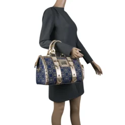 Versace Blue Python And Suede Canyon Top Handle Bag For Women