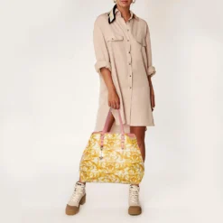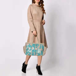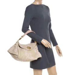 Versace Beige/Turquoise Medusa Print Coated Canvas And Patent Leather Patch Diaper Bag For Women