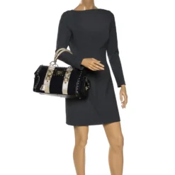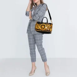 Versace Black/Gold Barroco Print Coated Canvas And Leather Medusa Icon Boston Bag For Women