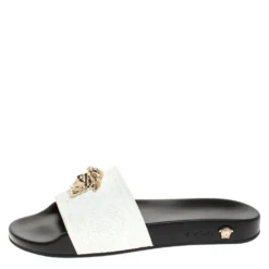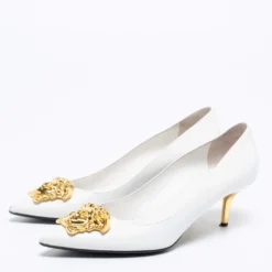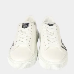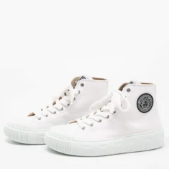 Versace White Leather And Canvas Tresor De La Mer Trigreca Lace Up Sneakers Size 39 For Women