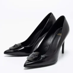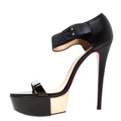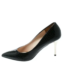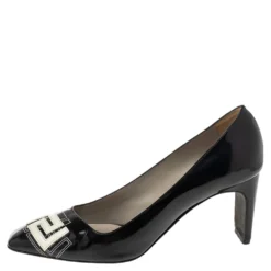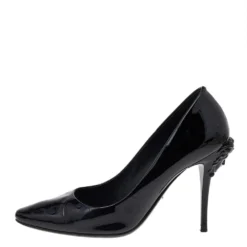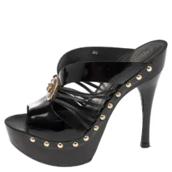 Versace Black Patent Leather Medusa Head Buckle Peep-Toe Slingback Sandals Size 37.5 For Women