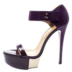 Versace Purple Suede And Patent Leather Floral Metal Mesh Platform Sandals Size 39 For Women