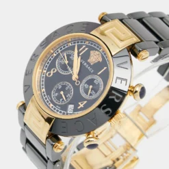 Versace Black Ceramic And Gold Plated Steel Chronograph Reve 95C Women’s Wristwatch 40 Mm For Women