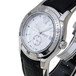 Versace Off-White Stainless Steel Embossed Leather Hurricane ULQ 99 Men’s Wristwatch 36MM For Men