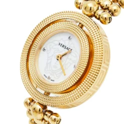 Versace Opaline White Yellow Gold Tone Stainless Steel Vanity P5Q Women’s Wristwatch 35 Mm For Women