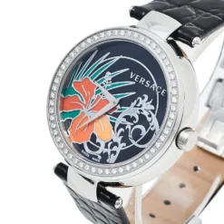Versace Black Stainless Steel Python Leather Diamonds Destiny 67Q Women’s Wristwatch 39 Mm For Women