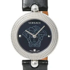 Versace Black Stainless Steel Patent Leather Eon Soiree 94Q Women’s Wristwatch 27 Mm For Women