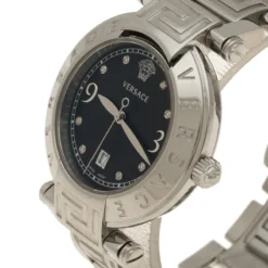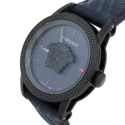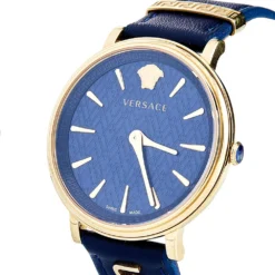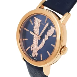 Versace Blue Gold Plated Stainless Steel Leather Virtus VEHC Women’s Wristwatch 36 Mm For Women