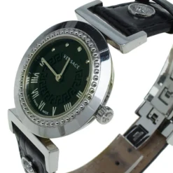Versace Blue Gold Plated Stainless Steel Leather V-Signature VLA Women’s Wristwatch 35 Mm For Women
