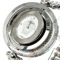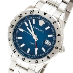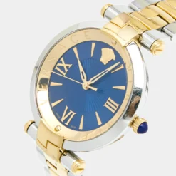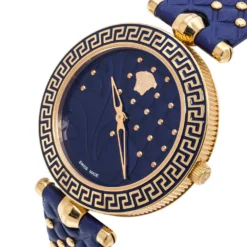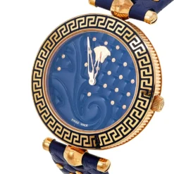 Versace Blue Rose Gold Plated Stainless Steel Leather Vanitas VK7 Women’s Wristwatch 40 Mm For Women