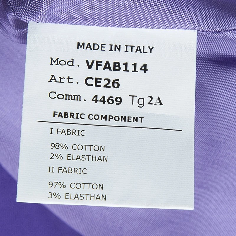 - Fabric: Shell : 98% Cotton , 2% Elastane ( Lining : 50% Viscose , 50% Acetate )